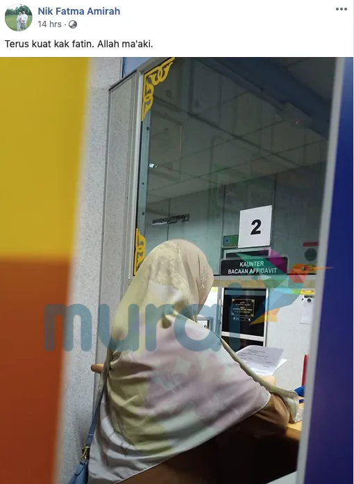 Sudah berapa minggu saya bersama Kak Fatin, bantu support emosi beliau, datang ke rumahnya sewaktu suami beliau tiada, dengar luahannya dan lain-lain. Saya tahu keputusan ini berat untuk beliau terima. Tapi beliau kuat dan redha”