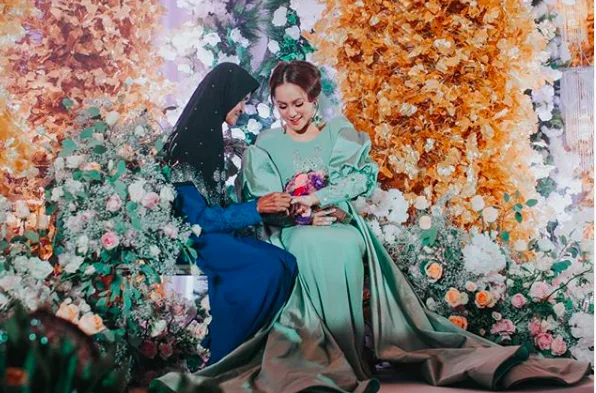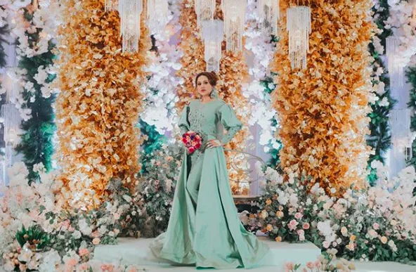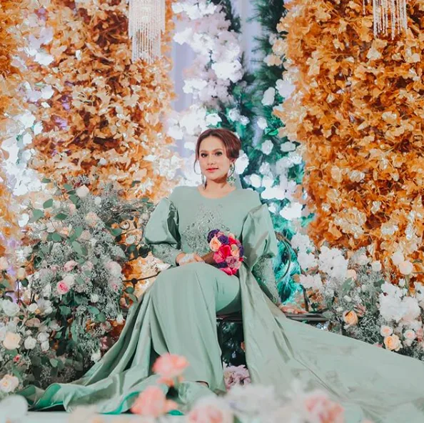 Majlis yang diadakan di Pusat Dagangan Dunia Putra (PWTC), Kuala Lumpur itu memperlihatkan Elly kelihatan cukup cantik dengan menggayakan busana berwarna hijau pastel rekaan pereka fesyen terkenal, Jimmy Couture.