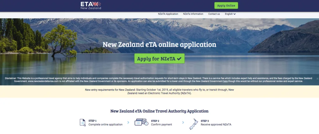 Warga Malaysia, anda perlu mengisi ETA secara dalam talian dan membayar antara NZ$9 hingga NZ$12 (RM25 – RM33) dan mengambil masa dalam 72 jam untuk mendapat kelulusan.
