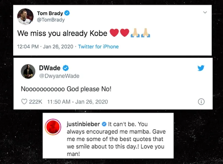 Kobe Bryant adalah salah seorang pemain NBA terbaik yang pernah ada. Sepanjang kariernya selama 20 tahun, Bryant secara aktif mempertahankan LA Lakers dan menjadi Most Valueable Player (MVP) pada tahun 2008. Hingga kini, ucapan takziah terus mengalir dari peminat dan rakan sekerja Kobe, termasuk selebriti dunia seperti penyanyi, Justin Bieber.