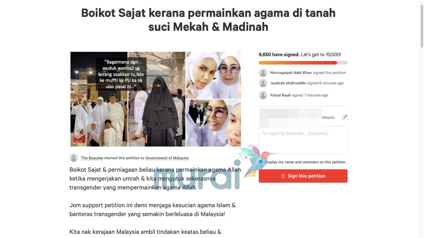 Menerusi carian Murai.my yang terkini, terdapat lebih dari 8 ribu orang pengguna telah menandatangani petisyen tersebut.
