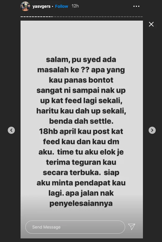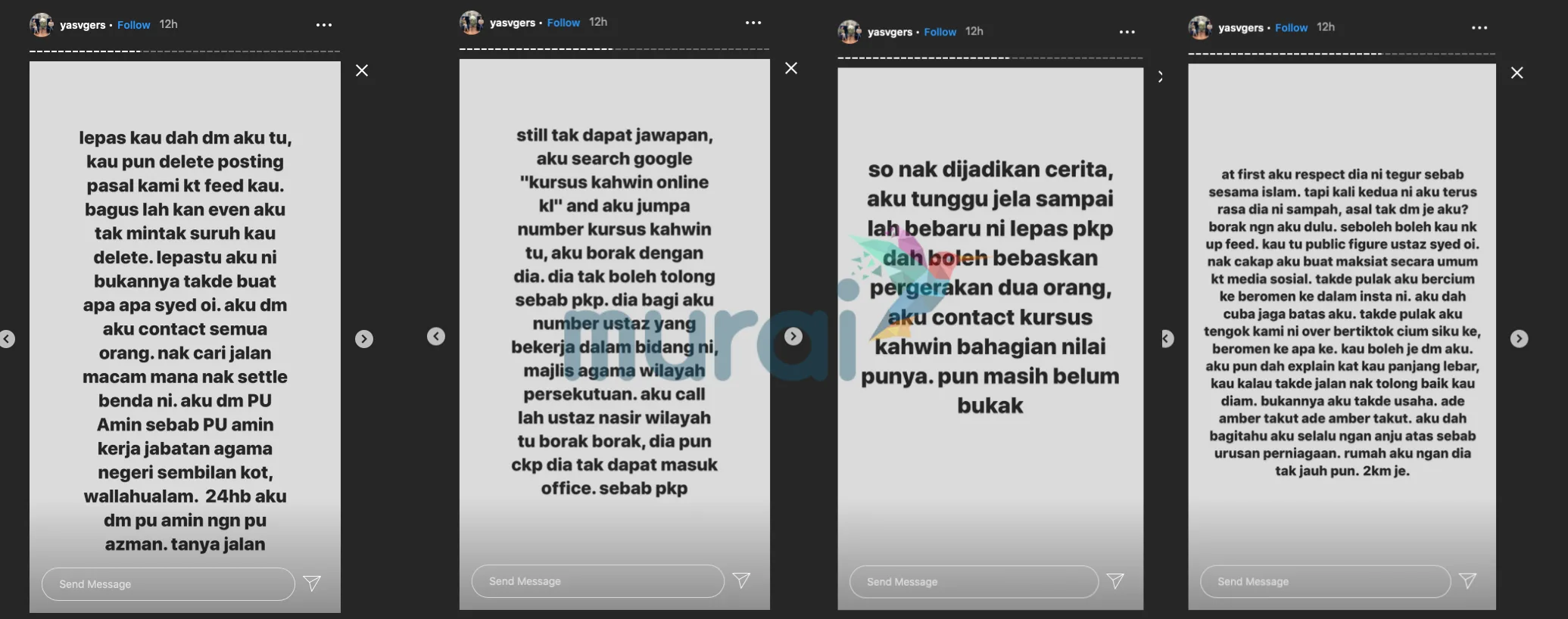 Tambahnya lagi, sekiranya PU Syed ingin memberi teguran kepada mereka, pendakwah tersebut boleh menghubunginya secara peribadi dan bukanlah mendedahkannya kepada umum.