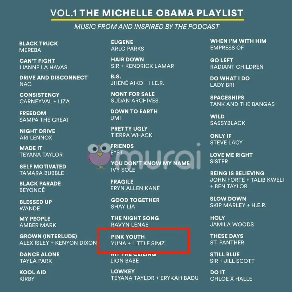 Michelle Obama baru saja membuat senarai lagu pilihannya untuk meraikan podcast barunya, ‘The Michelle Obama Podcast‘, dan siapa sangka nama penyanyi Yuna Zarai ada dalam senarai itu.