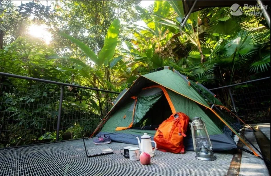 Glamping, gabungan glamour dan perkhemahan, dimana alam semulajadi bertemu kemewahan yang moden. Sebagai info, Boulder Valley Glamping ini memberikan pengalaman glamping yang luar biasa di dalam hujan tropika yang unik.