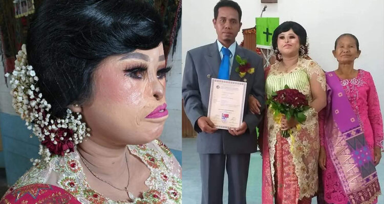 Dalam postingnya, Sortalina, yang mempunyai kekurangan fizikal di wajahnya, kelihatan bahagia berdampingan dengan suaminya ketika berkahwin.