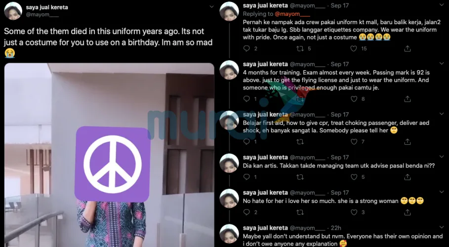 Menurut netizen tersebut, dia berasa kecewa dengan tindakan Bella kerana pakaian tersebut bukanlah sesuatu yang boleh digunapakai ketika di majlis hari lahir. Malah, mereka yang bekerja di dalam sektor penerbangan juga sama sekali tidak akan memakai pakaian tersebut di mana-mana tempat terbuka kerana ianya menyalahi etika.