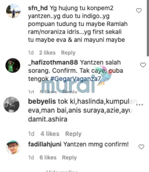 Dalam ramalan tersebut, beberapa nama penyanyi popular era 90 dan awal 2000 telah disebut-sebut ramai. Antaranya seperti Yantzen,Noraniza Idris, Ayu Damit, Man Bai, Haslinda, Azie, Kumpulan EVA yang dikatakan sebagai peserta GV7. Difahamkan, program ini akan turut berlangsung dalam norma baharu yang mana berkemungkinan besar skala penonton secara langsung akan dikurangkan.