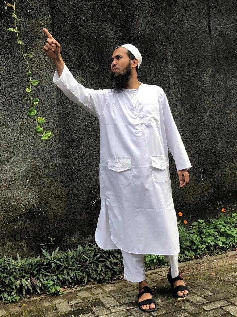 Jubah putih yang dipakainya dalam foto ini adalah salah satu koleksi yang dipamerkan oleh Sakti di akaun Instagramnya yang kini diikuti oleh 109 ribu orang.