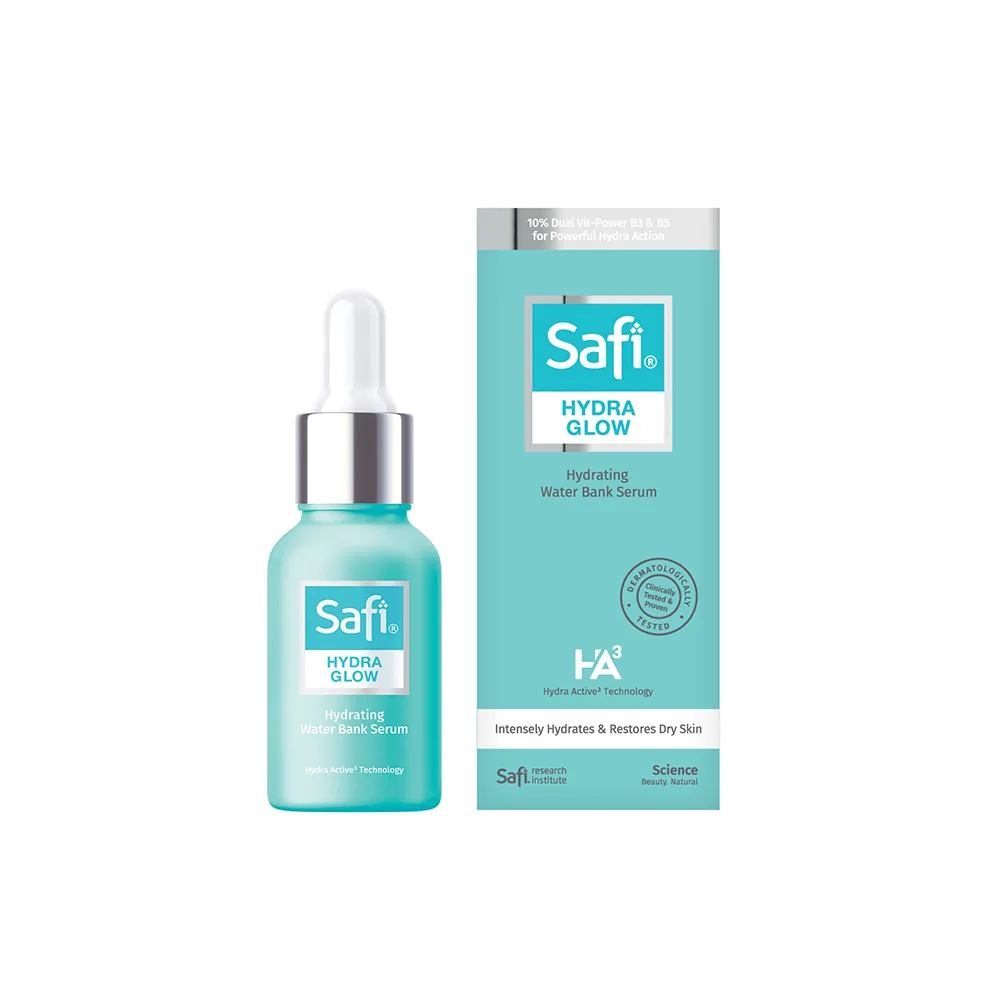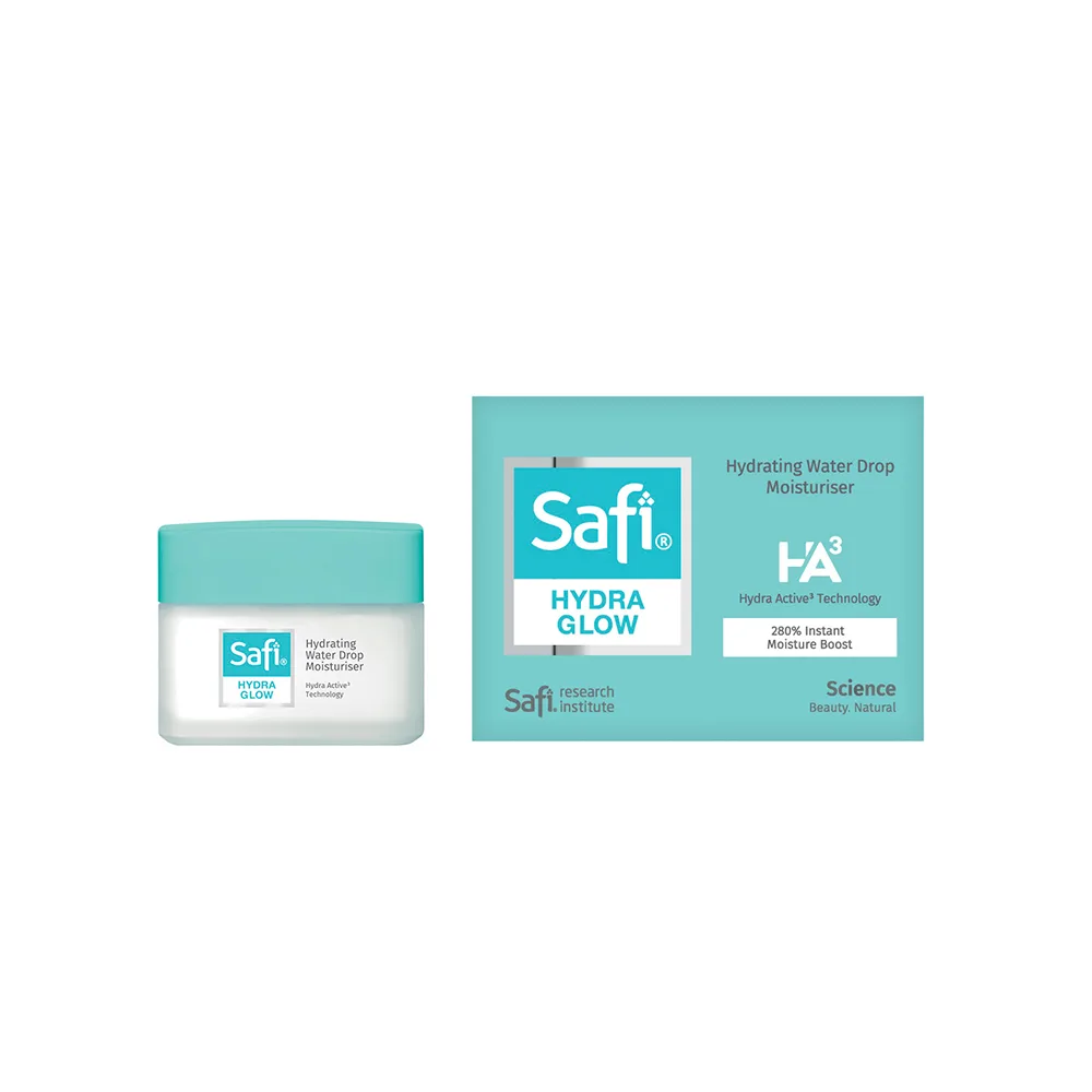 Formulasi gel krim ringan ini berubah menjadi titisan air yang melembapkan apabila digunakan. Pelembap Penghidratan Hydra Glow diformulasi dengan Vitamin B3 yang larut di dalam air untuk memulihkan, mengekalkan serta memperbaiki kelembapan kulit dengan berkesan. Pelembap ini menawarkan peningkatan kelembapan segera sebanyak 280% dan memberi kelembapan berterusan selama 72 jam, ia menganjalkan kulit serta menampilkan seri kulit. Pelembap Penghidratan SAFI Hydra Glow 40g ini dijual pada harga RM39.90.