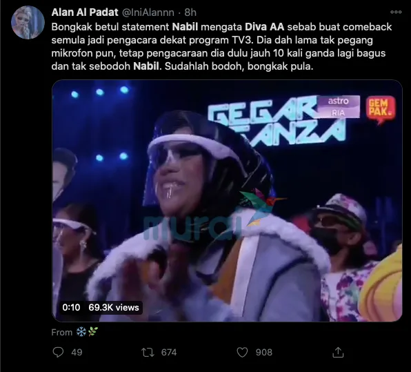 Seperti yang diketahui ramai, selebriti sensasi Azwan Hj Ali atau lebih dikenali sebagai Diva AA sememangnya terkenal dengan sikapnya yang lantang bersuara terhadap sesiapa sahaja. Ini termasuklah baru-baru ini Diva AA telah memerli pengacara Gegar Vaganza 7 (GV7),Nabil Ahmad di media sosial atas gaya pengacaraanya.