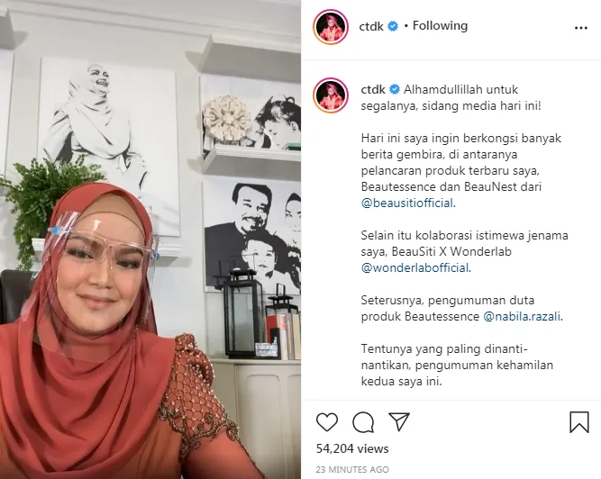 4 Yang Menarik Di Sebalik Pengumuman Kehamilan Kedua Siti Nurhaliza
