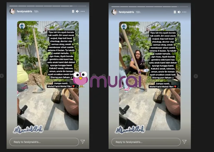 Menerusi beberapa hantaran di laman Insta story dan Instagram miliknya, Faralyna yang hamil empat bulan turut mendedahkan rentetan peristiwa keguguran nya itu. Akui sedih, dia dan suami tetap bersyukur kerana diberikan rezeki menimang bayi lelaki meskipun hanya seketika.