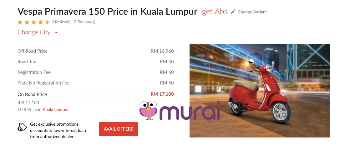 Menerusi carian Murai.my, Vespa varian Primavera 150 yang dikategorikan sebagai skuter mewah berharga lingkungan RM17 ribu dan mampu mencecah RM20 ribu mengikut spesifikasi yang dikehendaki. Ini termasuklah varian yang dimiliki oleh Janna yang dilihat telah dihias khas berwarna merah sekaligus menampakkan lagi ciri premium nya.