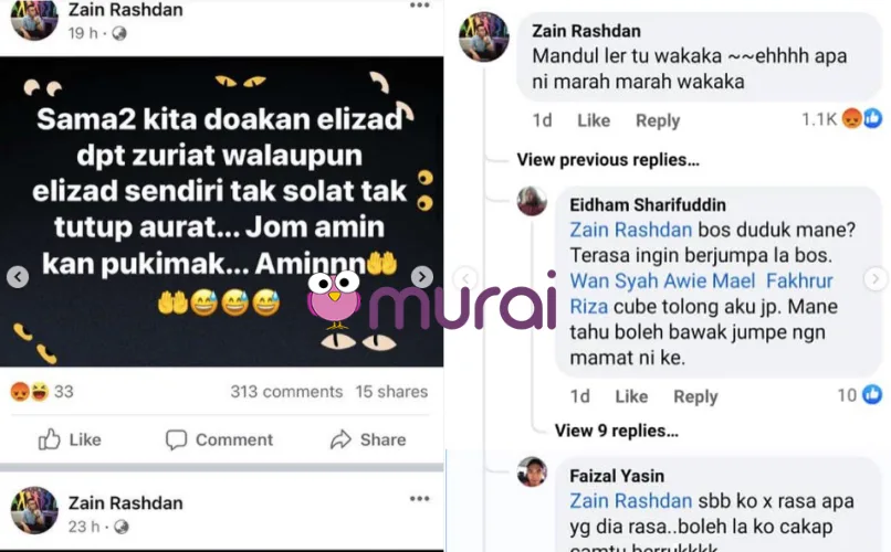 Bukan itu sahaja, malah Elizad atau nama sebenarnya Siti Elizad Mohamad Sharifuddin, 37 turut dituduh secara terbuka oleh netizen berkenaan yang dikenali sebagai Zain Rashdan kononnya pelakon yang juga penyampai radio Sinar FM itu tidak menunaikan solat.