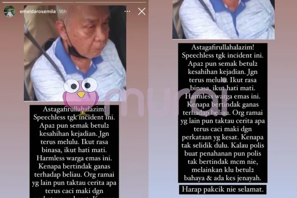 Kalau polis buat penahanan pun polis tak bertindak macam ini, melainkan kalau betul-betul bahaya dan ada kes jenayah. Harap pakcik ini selamat.” Tulis Emelda