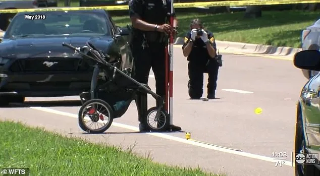Reisinger-Raubenolt, yang membawa anak perempuannya dengan kereta sorong bayi, menyeberangi jalan di sepanjang Gandy Boulevard.