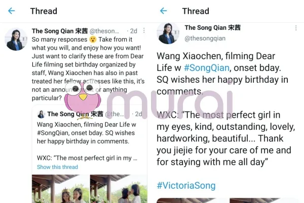 Dipetik dari laman Twitter studio Victoria Song iaitu The Song Qian, mengeluarkan kenyataan bahawa ciuman yang berlaku itu adalah diset penggambaran bagi merakam drama Dear Life.
