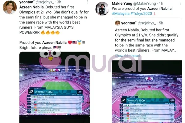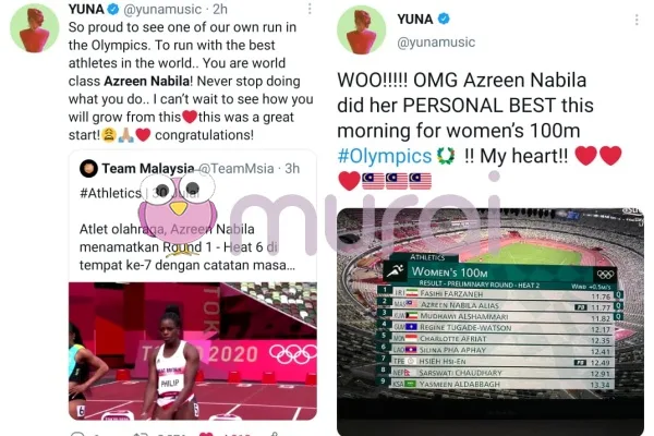 Tular di media sosial penyanyi Yuna berkongsi kata-kata semangat dan rasa kagum terhadap atlet lari pecut negara Azreen Nabila yang bertanding bagi kategori 100 meter wanita di Olimpik 2020.