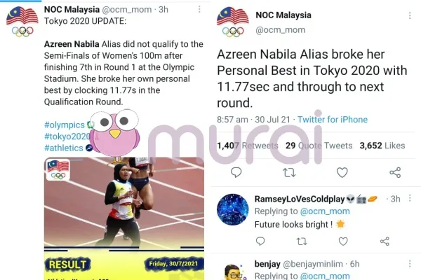 Murai MY juga ingin mengucapkan tahniah buat Azreen Nabila dan cuba yang terbaik untuk pentas Olimpik yang seterusnya.