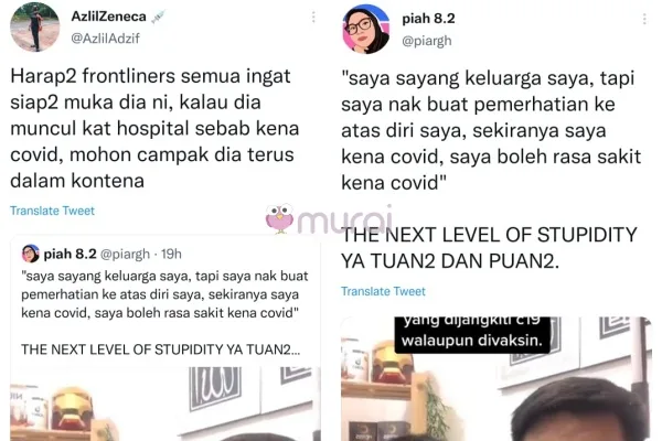 “Harap-harap petugas barisan hadapan semua ingat siap-siap muka dia ni, kalau dia muncul dekat hospital sebab kena Covid. Mohon campak dia terus dalam kontena.” Ciap pengguna pertama