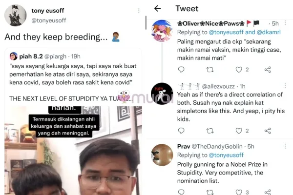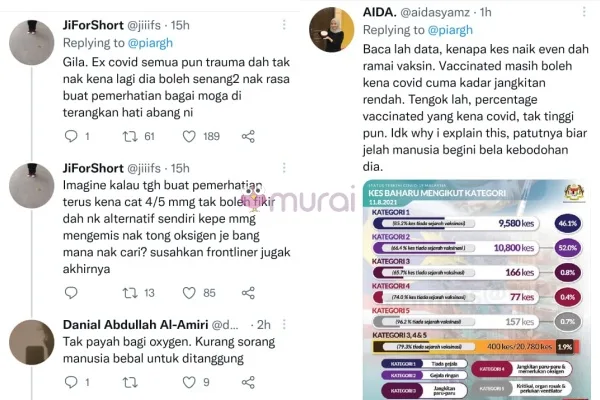 “Paling mengarut dia cakap ‘Sekarang makin ramai vaksin, makin tinggi kes, makin ramai mati.” Ciap pengguna pertama