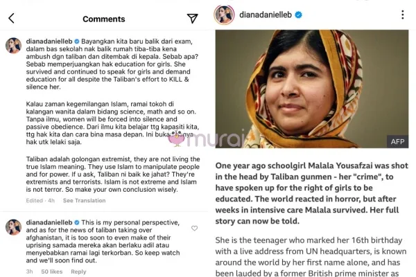 Diana Danielle Berdebat Dengan Netizen Soal Taliban?