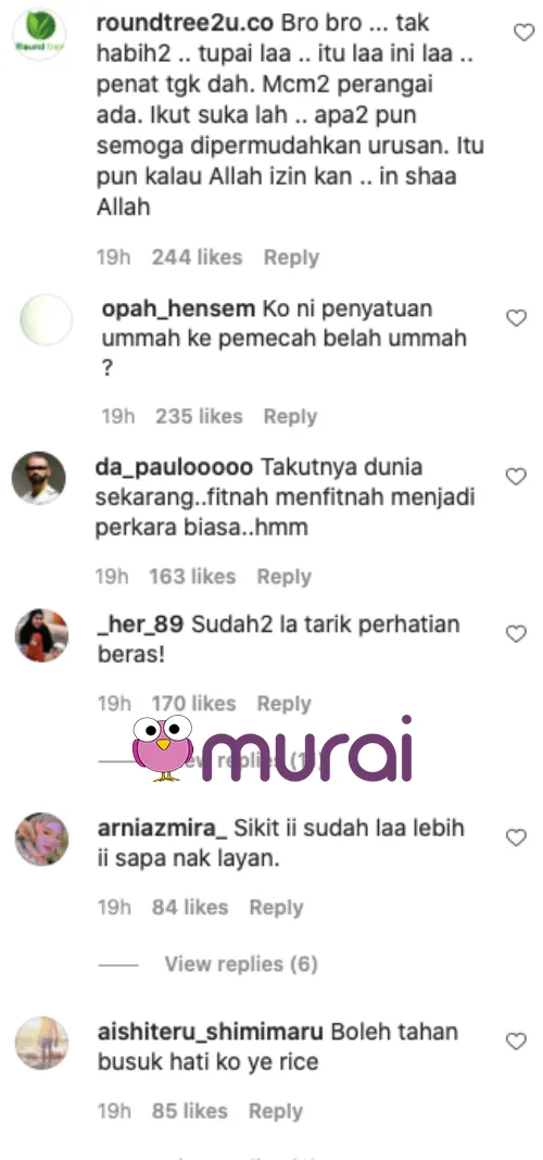 “Dah-dah la tu hidup menyindir. Tiba-tiba je post tupai la popcorn la.. ada-ada saja kau ni? Ragu-ragu orang nak follow kau rapatkan saf ni? Betul ke tak betul saf nya ni..aishhh risau” tulis mereka
