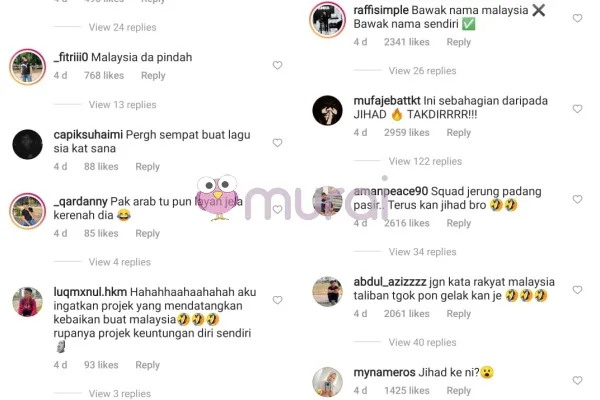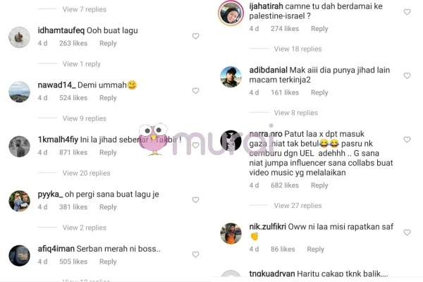 “Patut lah tak dapat masuk Gaza, niat tak betul lepas tu nak cemburu dengan UEL. Adehh.. Pergi sana niat jumpa influencer sana kolaborasi buat video muzik yang melalaikan”
