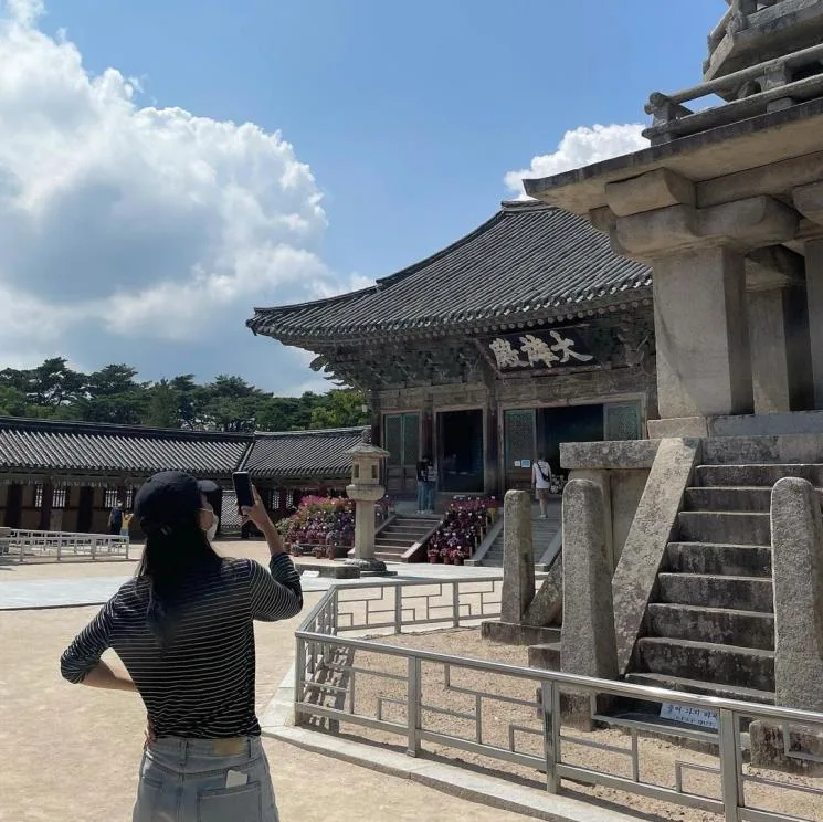 Walaupun sedang sibuk dengan jadual penggambaran yang padat hampir setiap hari, Shin Min Ah masih sempat meluangkan masa untuk berjalan-jalan di sekitar bandar. Seperti gambar yang kami kongsikan, Shin Min Ah dilihat sedang mengunjungi Kuil Bulguk, Gyeongju, Korea Selatan. Dia mengenakan pakaian kasual iaitu t-shirt tangan panjang bergaris dan seluar denim. Topi dan pelitup muka merupakan aksesori pelengkap untuk setiap perjalanannya.
