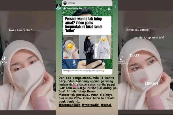 “Nak tanya, perempuan pakai niqab sebenarnya untuk tak nak dipandang kan? Tapi kenapa ramai perempuan pakai purdah/niqab ni rajin nau buat TikTok, joget-joget. Walaupun lah joget sopan tapi tu lah.. Sekadar bertanya”