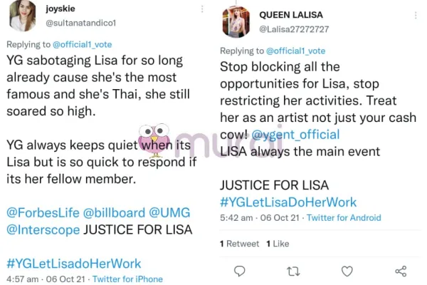“YG sabotaj Lisa terlalu lama sangat kerana dia terlalu terkenal dan dia Thai. Dia masih mampu terbang tinggi. YG sentiasa senyap bila hal Lisa tapi respon pantas bila ianya mengenai hal ahli kumpulan dia.”