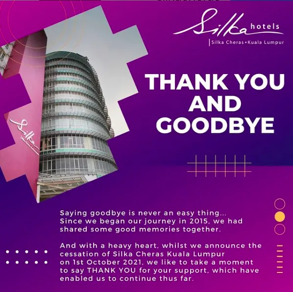 “Jadi kami ingin ucapkan ribuan terima kasih pada hari ini kerana kami akan menutup operasi dan mengucapkan selamat tinggal kepada semua” tulis pengendali Instagram Silka Hotel Cheras