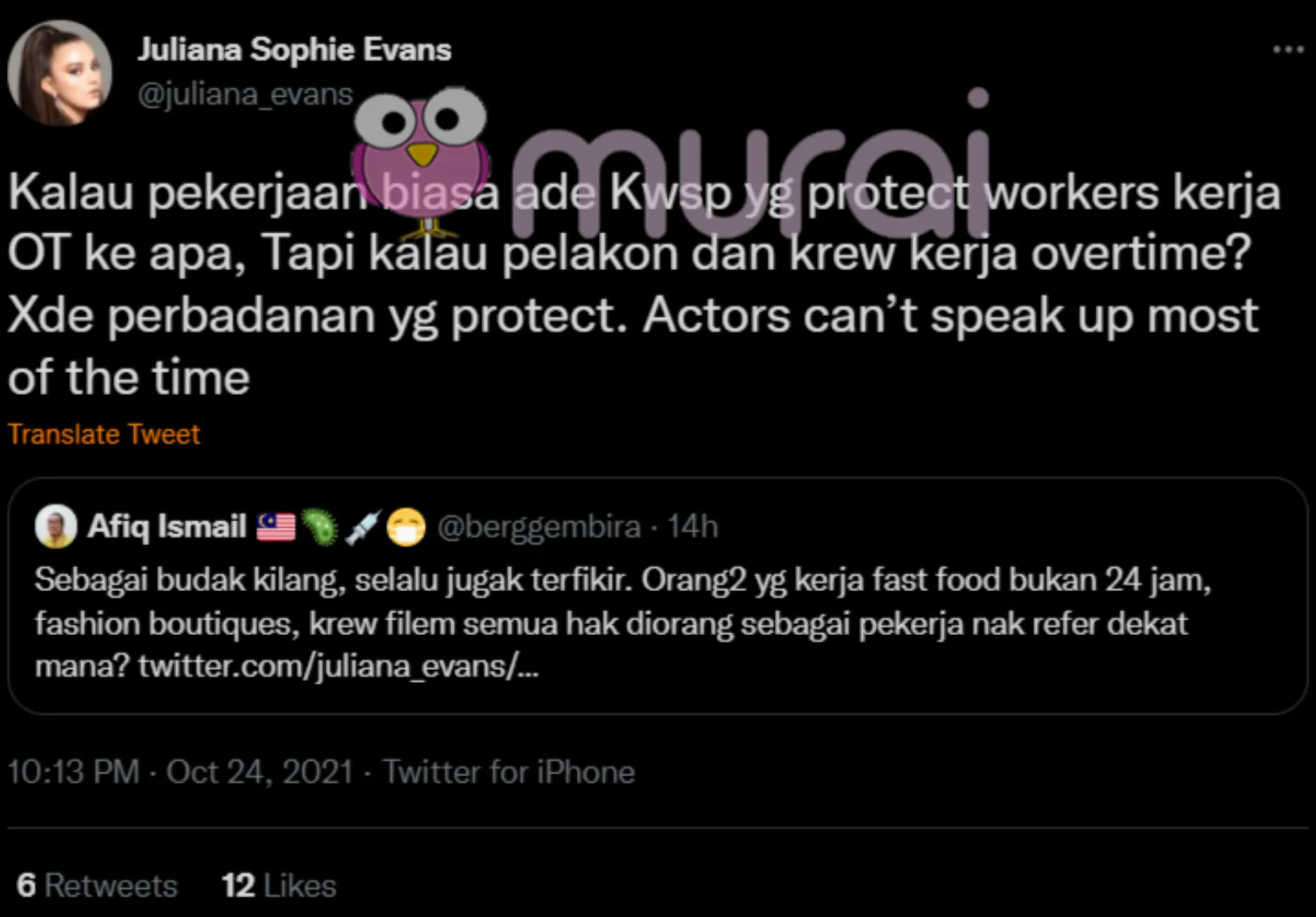 “Sebagai budak kilang, selalu jugak terfikir, Orang-orang yang kerja fast food bukan 24 jam, fashion boutiques, krew filem semua hak diorang sebagai pekerja nak refer dekat mana?-Soal Netizen