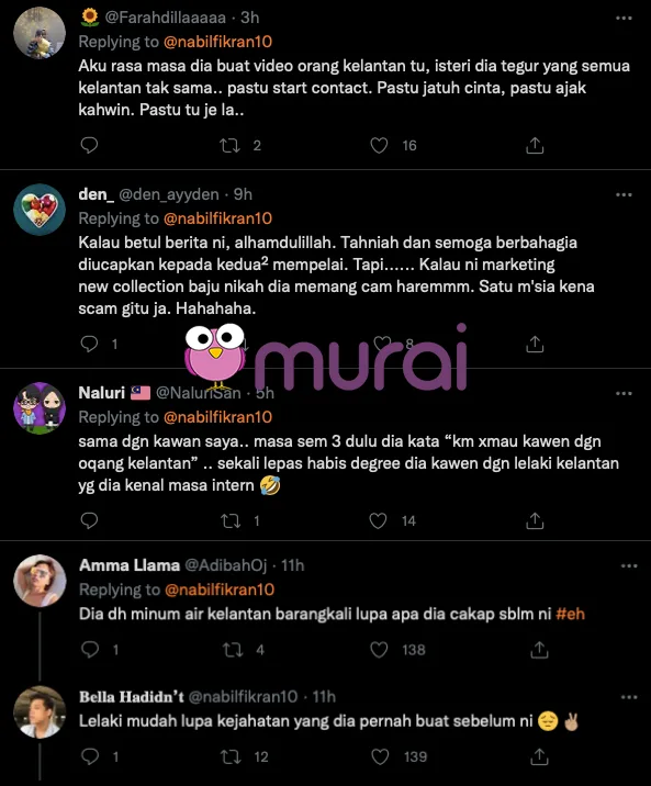 Dalam sebuah ciapan yang mendapat lebih enam ribu ulang kicau serta 10 ribu tanda suka, netizen tersebut berpesan untuk tidak membenci seseorang itu terlalu mendalam kerana kelak siapa sangka akan menjadi jodoh mahupun suka padanya.