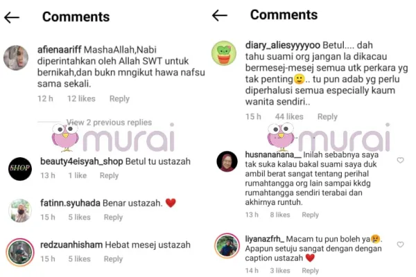 “Hebat mesej ustazah.” Komen mereka