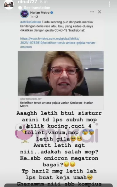 Berdasarkan perkongsian aktres senior ini, Rita seakan berseloroh dengan meluahkan rasa keliru sama ada keletihan yang dialaminya hari ini adalah kerana membuat kerja rumah terlalu banyak atau kerana gejala varian Omicron yang sedang heboh diperkatakan orang ramai ketika ini.