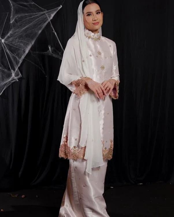 “Baju ini adalah rekaan Calvin Thoo. Sebenarnya saya tak sangka ada beberapa orang tegur termasuk kawan cakap penampilan saya malam ini cantik dan saling tak tumpah macam potret lukisan Mahsuri” katanya lagi