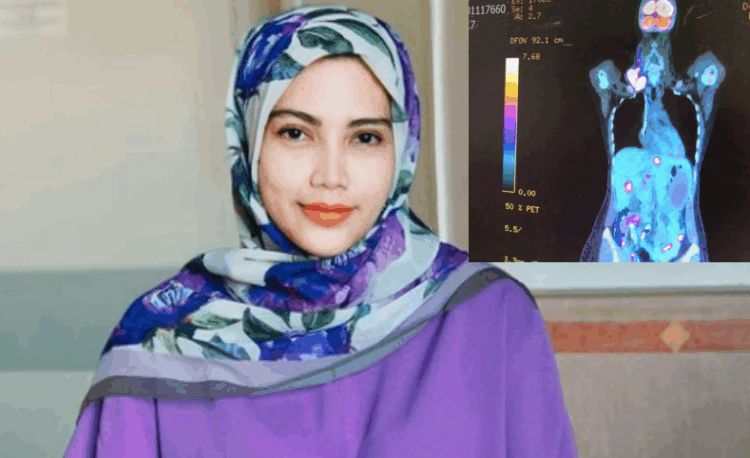 Dalam hantaran tersebut kelihatan perbandingan visual yang menunjukkan sel kanser di tubuhnya sudah hilang dan kembali pulih.