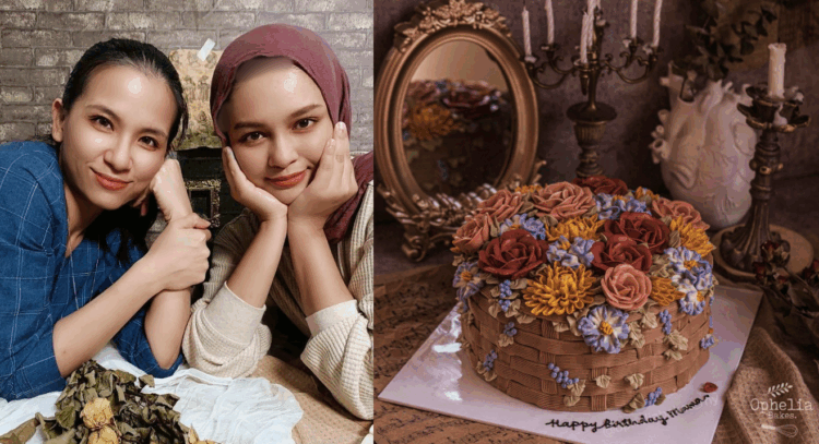 “Saya jalankan perniagaan berasaskan bunga dan kek dalam premis yang sama. Nabila dari Ophelia Bakes adalah kawan baik saya dan dah lama dia buat kek untuk saya punya perniagaan, Celestian Creations sejak daripada awal pembabitan lagi.