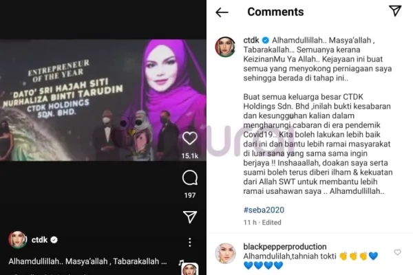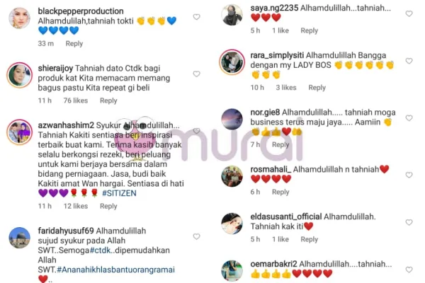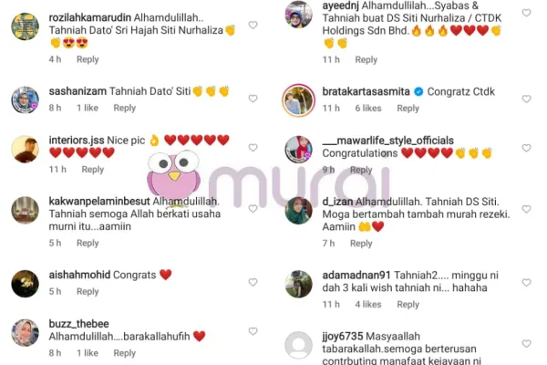 “Alhamdulillah.. Syabas dan tahniah buat DS Siti Nurhaliza / CTDK Holdings Sdn Bhd” komen mereka lagi