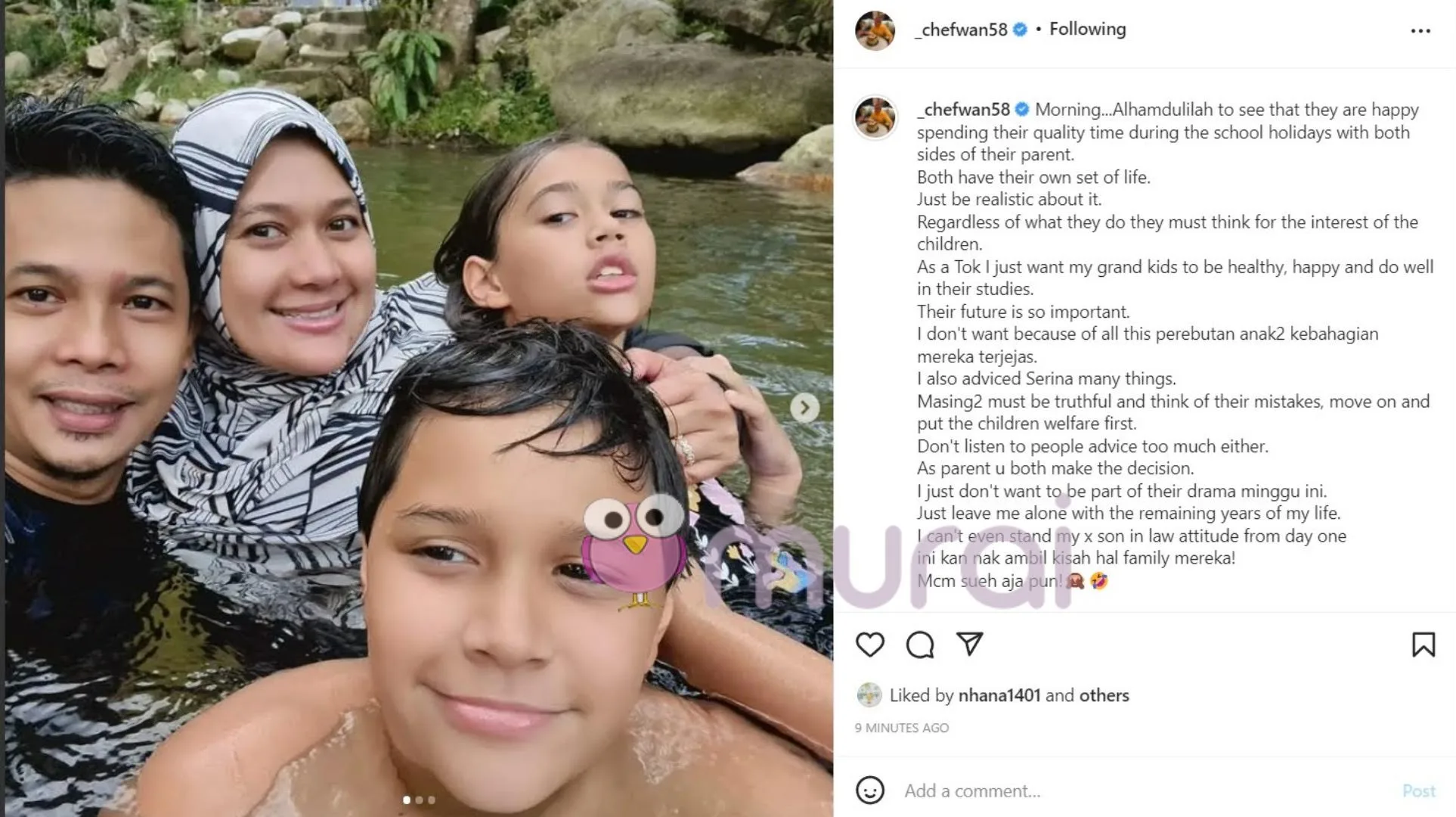 “Sebagai Tok, saya hanya mahu cucu-cucu saya sihat, ceria, dan cemerlang dalam pelajaran. Masa depan mereka sangat penting. Saya tidak mahu kerana semua ini perebutan anak-anak bahagian mereka terjejas.”- ujar Chef Wan