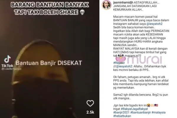 Insiden barang bantuan disekat dan tidak boleh dikongsi kepada mangsa banjir yang sedang berlaku di beberapa lokasi pusat penempatan sementara (PPS), tular di media sosial dan mendapat perhatian orang ramai khususnya yang menyumbang barang bantuan.