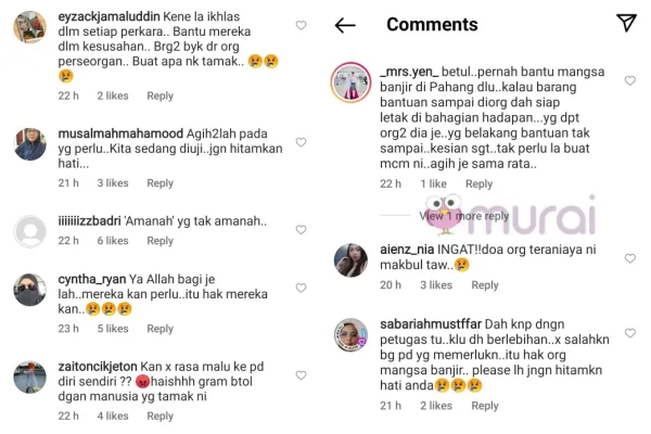 Macam-macam komen pasal hal BANTUAN BANJIR yang saya baca dalam Instagram sahabat saya @iesyatoh2