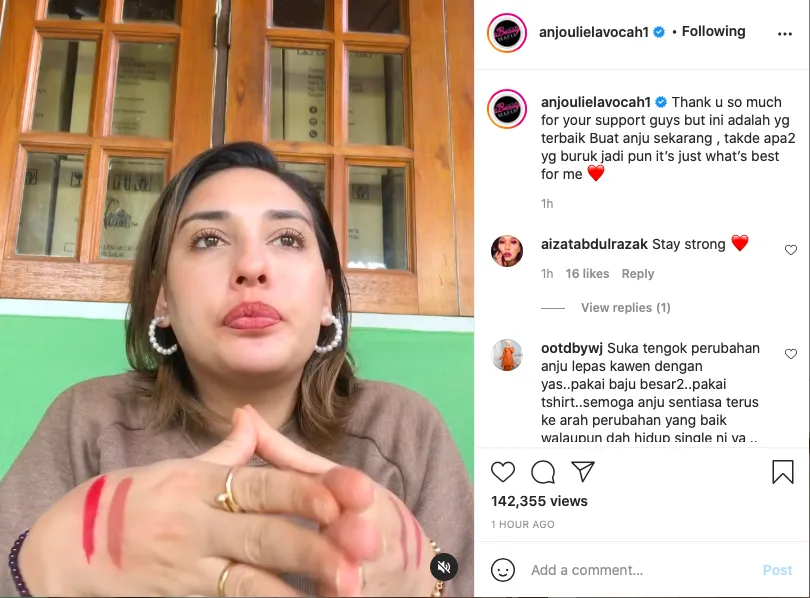 “Saya ini adalah yang terbaik untuk saya. Saya nak fokus kerja, anak dan keluarga. Saya nak luangkan masa dengan keluarga dan gunakan masa ini untuk lebih rapat dengan mereka” katanya lagi