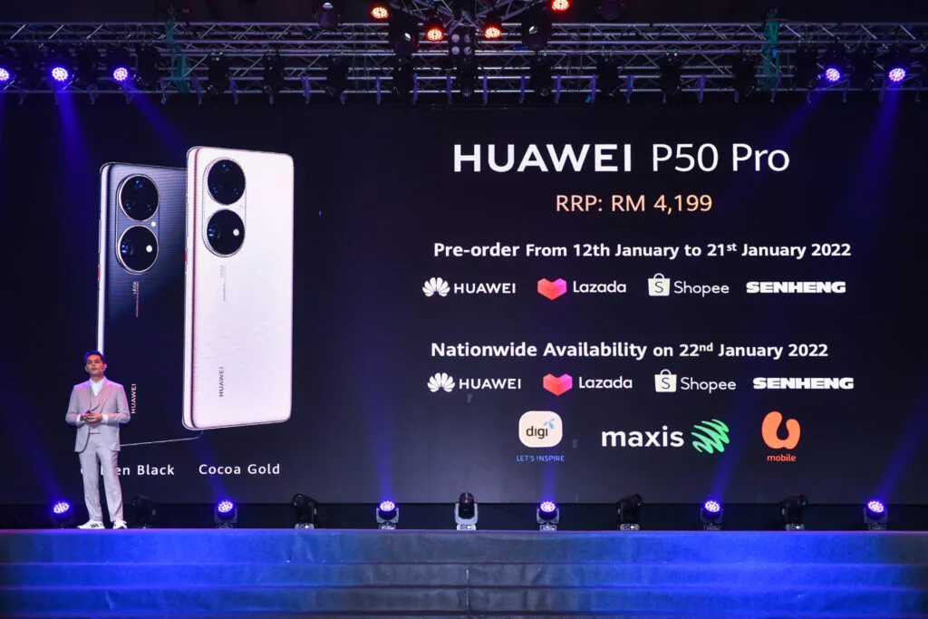 Dengan tanda harga RM4,199, HUAWEI P50 Pro boleh didapati secara pra-tempahan bermula 12 Januari 2022 dan boleh didapati di HUAWEI Official Website, HUAWEI Experience Stores, platform dan kedai rasmi bermula dari 22 Januari 2022. Untuk setiap pra-tempahan HUAWEI P50 Pro yang dibuat, pengguna boleh menikmati hadiah percuma yang hebat bernilai sehingga RM2,100*.