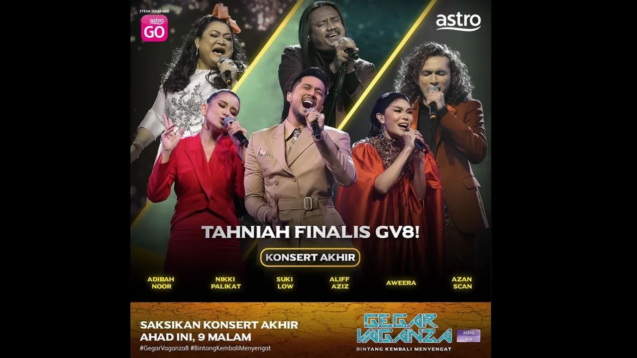Gegar Vaganza musim ke-8 (GV8) akan melabuhkan tirainya pada malam ini, Ahad 9 Malam. Program yang bermula pada 21 November 2021 menampilkan Penyanyi lagenda indonesia, Hetty Koes Endang kembali sebagai juri tetap bersama Dato’ Ramli MS (Tok Ram) dan bersama juri tetap baharu iaitu Dato’ Syafinaz Selamat.