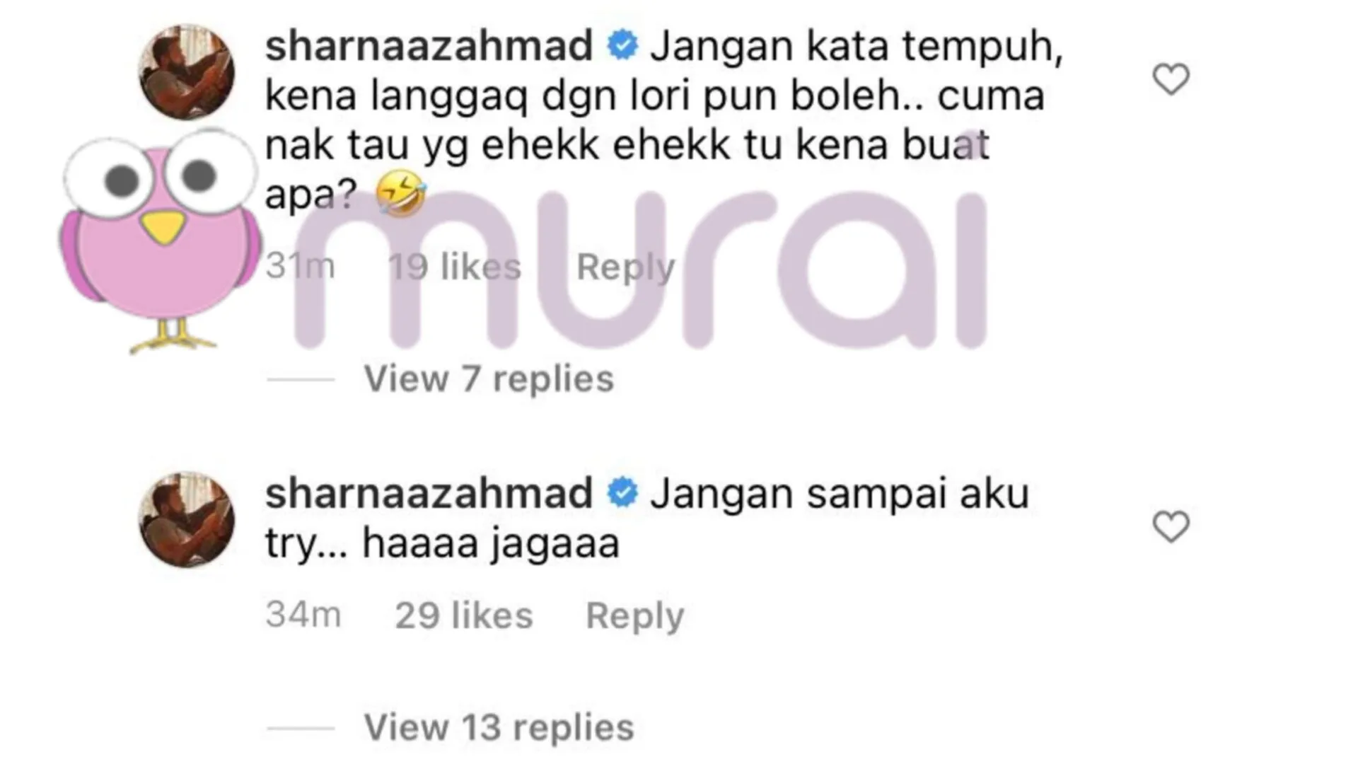 Cuma nak tau yang ehekk ehekk tu kena buat apa? ?”- komen Sharnaaz