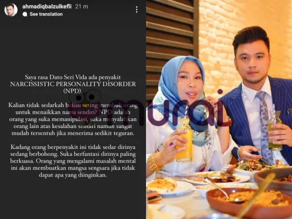 “Saya rasa Dato Seri Vida ada penyakit NARCISSISTIC PERSONALITY DISORDER (NPD).