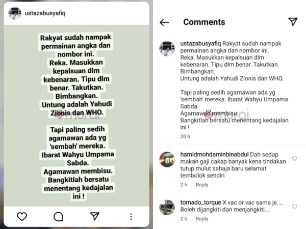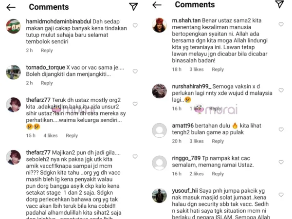 “Tak vaksin atau vaksin sama je….. Boleh dijangkiti dan menjangkiti…” Komen mereka