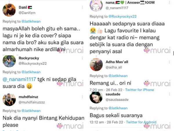 “MasyaAllah boleh gitu eh sama.. Lagu ni je ke dia ‘cover’? Siapa nama dia bang? Aku suka gila suara almarhumah Nike Ardilla ni” ciap warganet